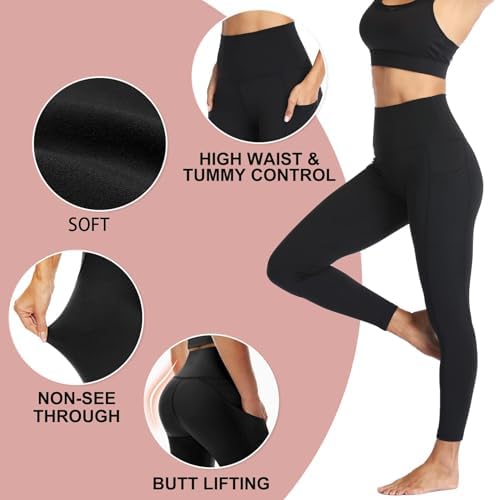 NexiEpoch 4 Pack Leggings for Women with Pockets- High Waisted Tummy Control for Workout Running Capri Yoga Pants