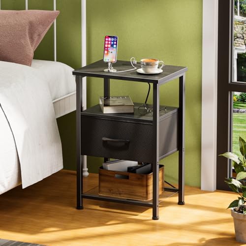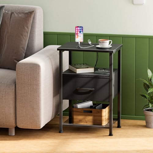 Plenty of space to put everyday items! The setup was very easy, took like 30 minutes to build both nightstands. It matches the height of my bedframe perfectly. A little wobbly but still pretty sturdy. I enjoy that it has a drawer too. Outlets work and sit flesh with the board.