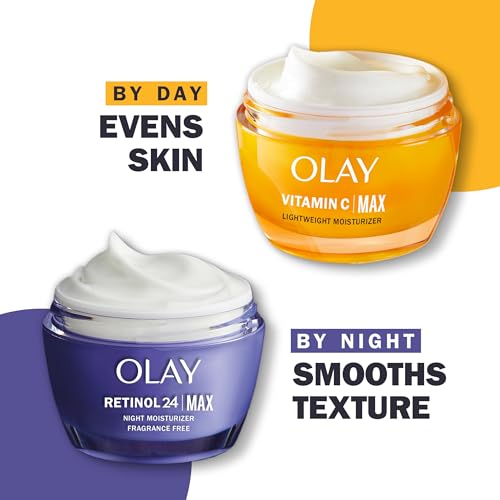 Max out your Retinol 24, This Olay Regenerist Retinol 24 Max moisturizer penetrates the surface of your skin at night to deliver skin transformation. We've packed this fragrance-free formula with retinol 24's maximum concentration of hydrators to leave you feeling hydrated and replenished. Our Retinol 24 formula is now in Max form With 20% more Retinol 24 Hydrating Complex, this formula visibly smooths wrinkles and evens tone. After cleansing, massage over your face and neck at night and wake to radiant skin. This formula contains no fragrance, phthalates, mineral oil, or synthetic dyes. Are you ready to maximize your skin care routine? Also included is a 1 week sample of our Regenerist Whip Facial Moisturizer. This fragrance-free whipped moisturizer absorbs instantly leaving your skin feeling soft and smooth, never greasy. Vs. Base Retinol24