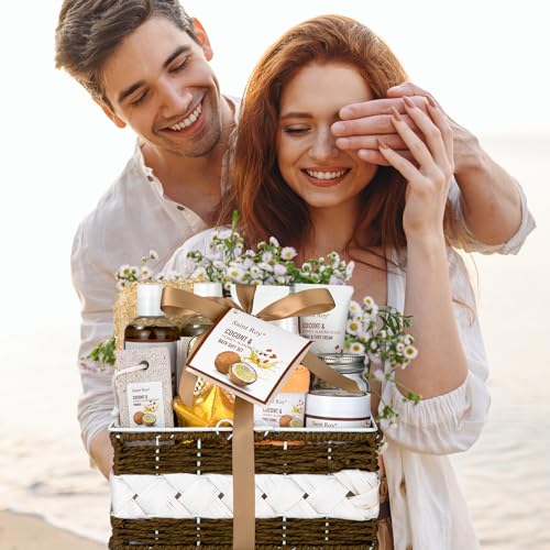 Saint Roy Spa Gift Set – Coconut &Honey almond Scented Bath Essentials Gift Basket withLavender essential oils & Rose essential oils which naturally soothe the body and mind.