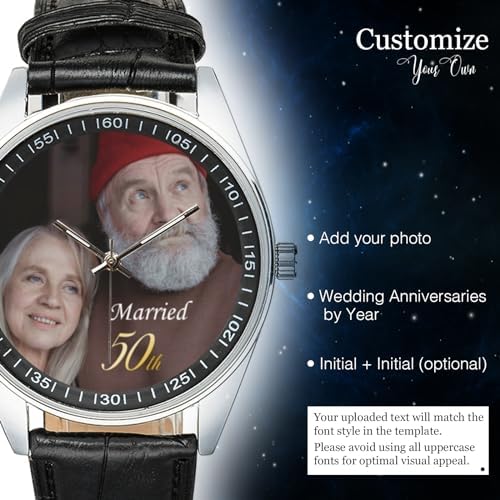 Personalized custom photo watches for men or women, Upload a favorite family picture, pets photo, business logo, monogram or initial name, Create a fashion and funny watches gifts for loved one, This is a great way to remember precious moments, such as wedding, engaged, newborn baby, housewarmings, birthday party, graduations, time spent with your kids or relatives at family events, a vacation or fond travel memory, or anything else that might be important to you. Best gifts for husband or wife on valentine day, wedding anniversary, mother's day or father's day.
