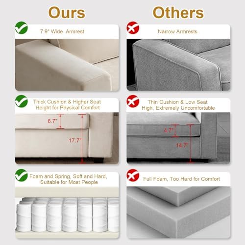 Pregaspor 86.6" Modern Chenille Sofa Couches for Living Room, Comfy 3 Seater Deep Sofa, Removable Sofa Cover Washable Sofa, Space Spring Cushions and Solid Wood Frame, Easy to Install (Beige)