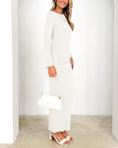 PRETTYGARDEN Women’s 2 Piece Outfits Long Sleeve Tops Bodycon Slit Skirt Sets