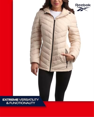 Reebok Women's Jacket - Lightweight Quilted Puffer Parka Coat with Flex Stretch Panels – Casual Jacket for Women (S-XL)