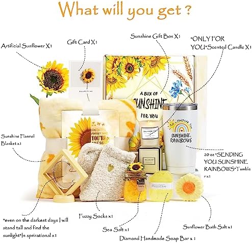 The sunflower always blooms in the direction of the sun, not afraid of trouble, tireless, so firm and persistent in pursuing what you want, This why we design the package, We hope that This sunflower gift basket for women can express all your wishes to her, may she be brave and strong!