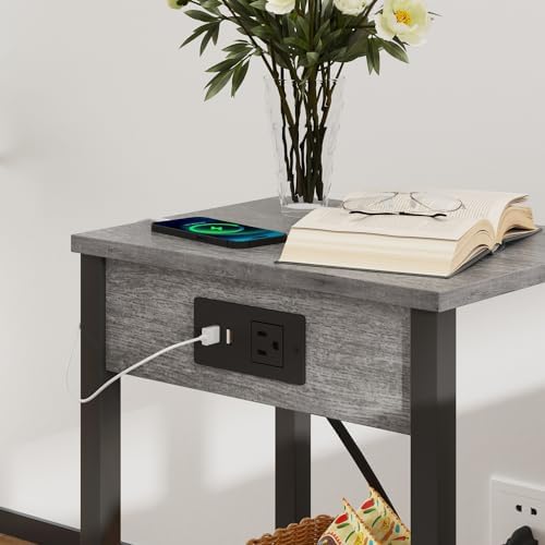 VIMBER 2-Tier end table has 1 outlets, 2 USB ports,the electrical cord is 6.57 ft long.
