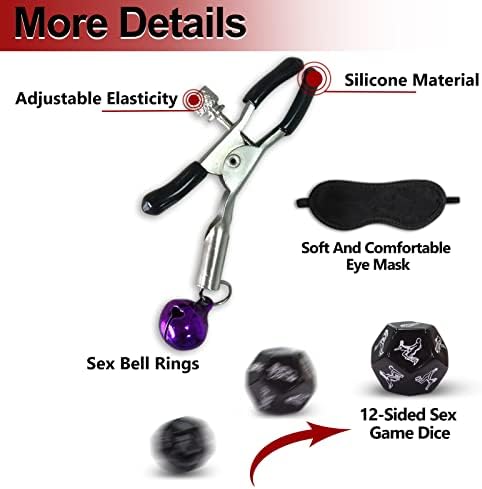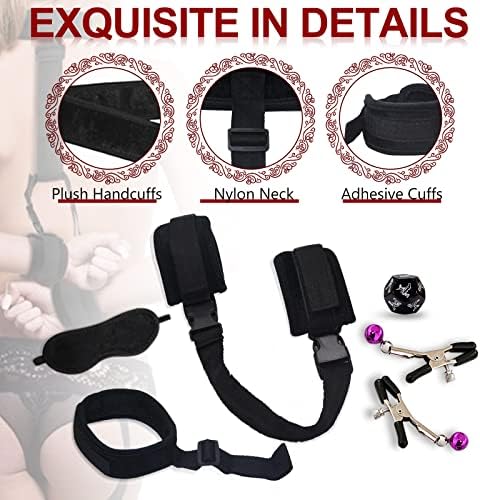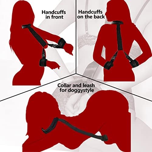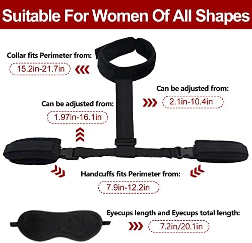 Sex Bondage BDSM, Adjustable Behind Back Handcuffs Collar with Blindfold Nipple Clamp Anti-Collar Bondage Sex Toys SM Adult Games Gear & Accessories.(Nylon)