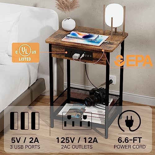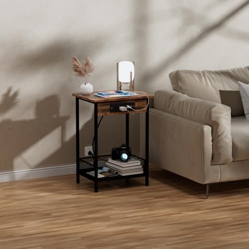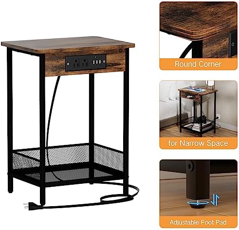 If you don't have enough space next to your bed, sofa, chair, or desk, this side table is ideal for small spaces. The rich color easily matches your decor, and the charging station includes 2 AC outlets, 3 USB ports to alleviate power concerns.
