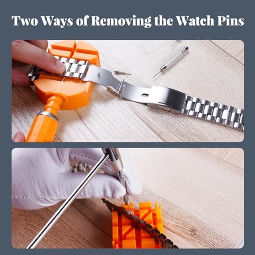 The watch band holder is used to catch the watch band, use the punch pin to hold the watch band pin and hit it with a hammer (this method is suitable for more solid pins).