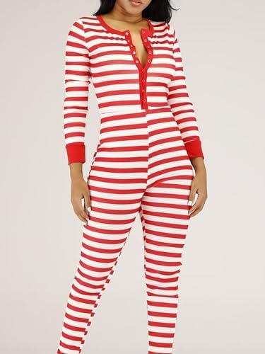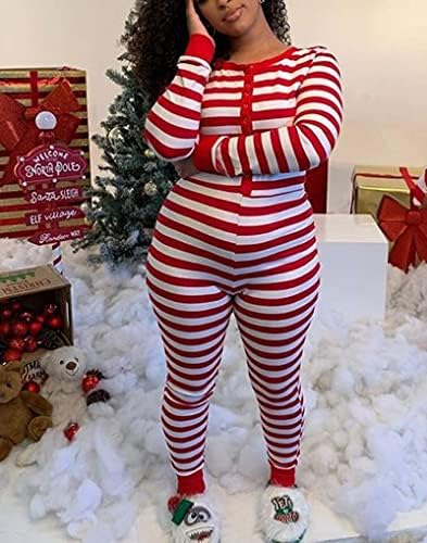 Springcmy Women Christmas One Piece Deep V-Neck Jumpsuit Button Bodycon Romper Sexy XMAS Pajamas Sleepwear Bodysuit