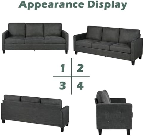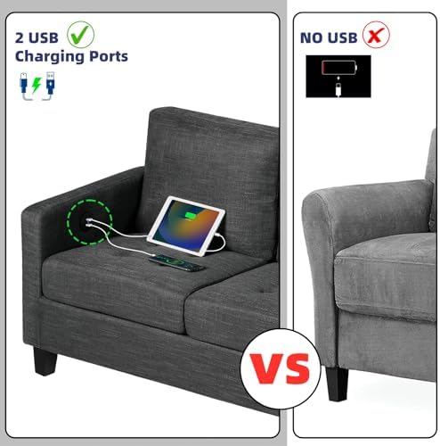 STHOUYN 72" W 3 Seater Couch Sofa with USB Ports, Grey Comfy Couches for Small Spaces, Mid Century Modern Gray Couch for Living Room Apartment Bedroom (Dark Grey)