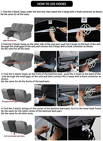 ULTICOR Velvet 8-Pieces Recliner Sofa Covers Stretch Reclining Couch Covers for 3 Cushion Reclining Sofa Slipcovers Furniture Covers Thick Soft Washable (3 Seater Recliner Cover, Dark Gray)