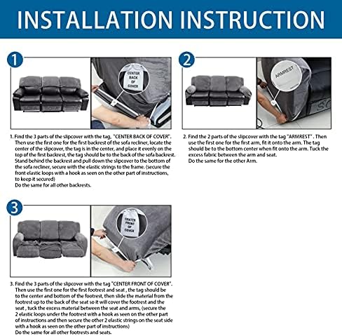 I would describe the material as soft velour, velvet look. Great instructions with pictures. Stretchy to make it as tight as needed. There’s ample material. The issue for me is the predetermined seams for the front of couch armrests are mis-aligned making it odd. The back of the couch is not neat with having recliner's on each end. It won’t look good if your back is seen. I won’t buy for the other 2 couches because of my issues.