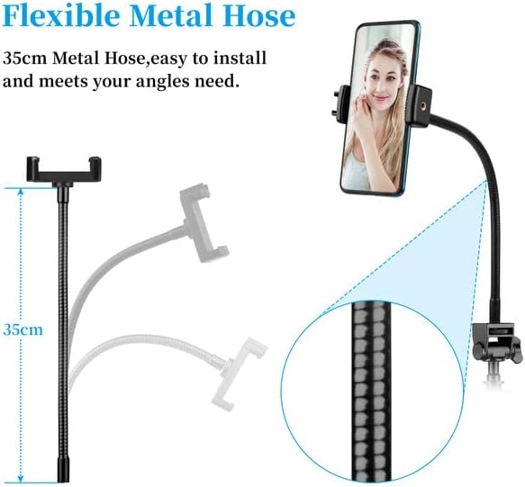 Universal Cell Phone Tripod Mount with 15.7" Aluminum Gooseneck and Cold Shoe Adapter, Compatible with iPhone15 14 13 12 11 Android Smartphones