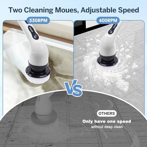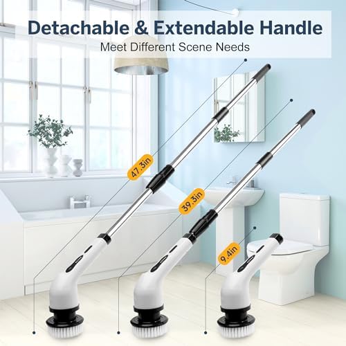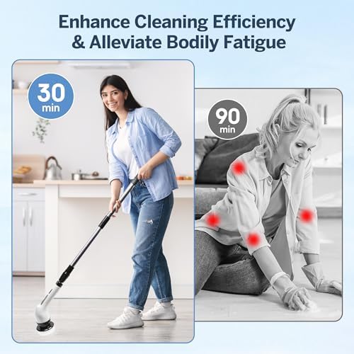 Upgraded Electric Spin Scrubber,Cordless Cleaning Brush,Shower Scrubber with 9 Replaceable Brush Heads, Power Scrubber 2 Adjustable Speeds Adjustable Long Handle for Bathtub Grout Tile Floor