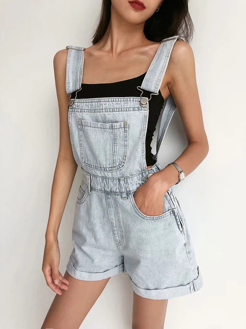 vintage sleeveless denim jumpsuit women high waist shorts Overalls sexy backless black playsuit casual jeans jumpsuit