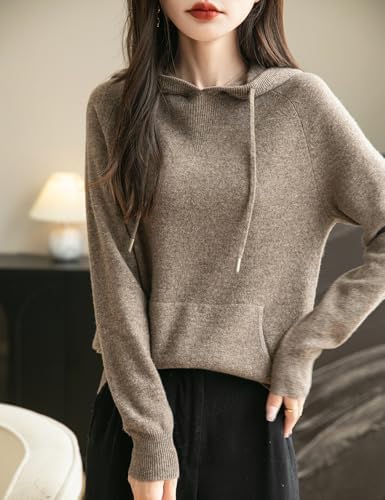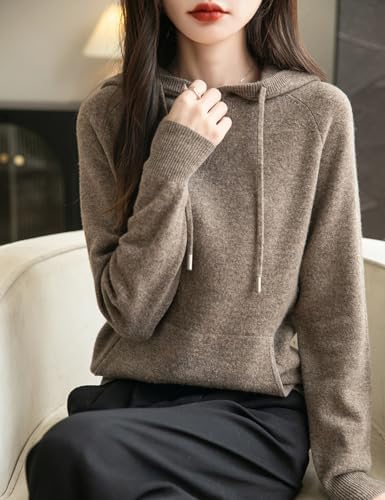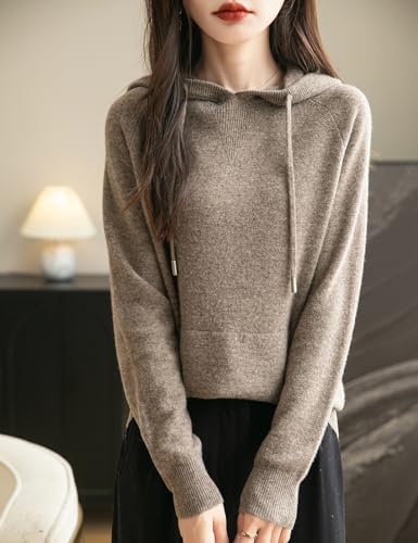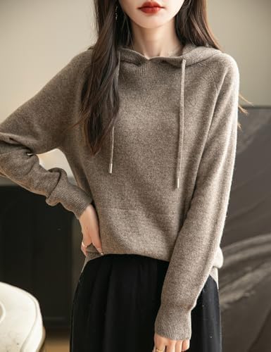 Women's 100% Merino Wool Hoodies 2024 Fall Winter Warm Soft Sweater Long Sleeve Knitted Sweatshirt with Pocket