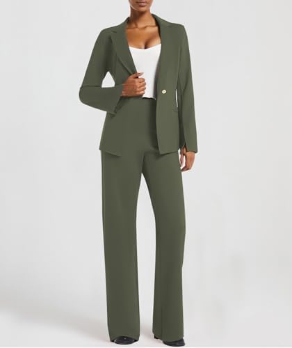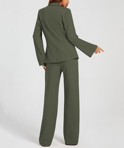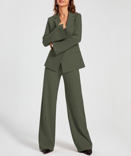 Women's 2 Piece Blazer Outfits Business Casual Asymmetrical Jacket Button Wide Leg Pants Dressy Suit Sets