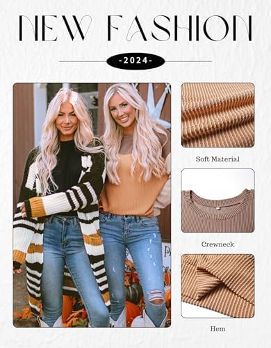 Long Sleeve Shirts for Women 2024 Color Block Crewneck Loose Pullover Tops