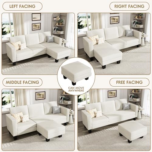 L-shaped Convertible Sectional Sofa Feature: YESHOMY L-shaped Convertible Sectional Sofa, 3 Seater with Corduroy Fabric, Complete with Mobile Footrest, for Living Room, Apartment and Office, 70", Beige Specification Color: White Material: Wood, etc Package Dimensions:65"(L) x 23"(W) x 8"(H) Package includes: A sofa A tool kit A manual of installation and usage Notice: There may be some differences between photos and items in term of color because the influence of lighting during the shooting or the settings of the computers’ display screen.