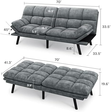 User guide Required Assembly Yes Style Color Dark Gray Back Style Cushion Back Shape Rectangular Style Name Modern Materials & Care Material Type Wood Features & Specs Is Customizable? No Seating Capacity 2.00 Weight Capacity Maximum 600 Pounds Additional Features Button Tufted, Space Saving, Recliner