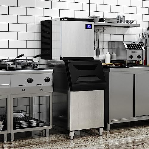 EFFICIENT ICE PRODUCTION & AIR COOLED DESIGN: Say goodbye to ice shortages with our industrial ice maker, capable of producing over 450 lbs ice within 24 hours and can store 300 lbs, 156 ice cubes can be produced in 5-15 minutes, our air-cooled ice maker required low water and energy consumption with minimal environmental impact, four cooling fans by the side of the unit for rapid and efficient heat dissipation