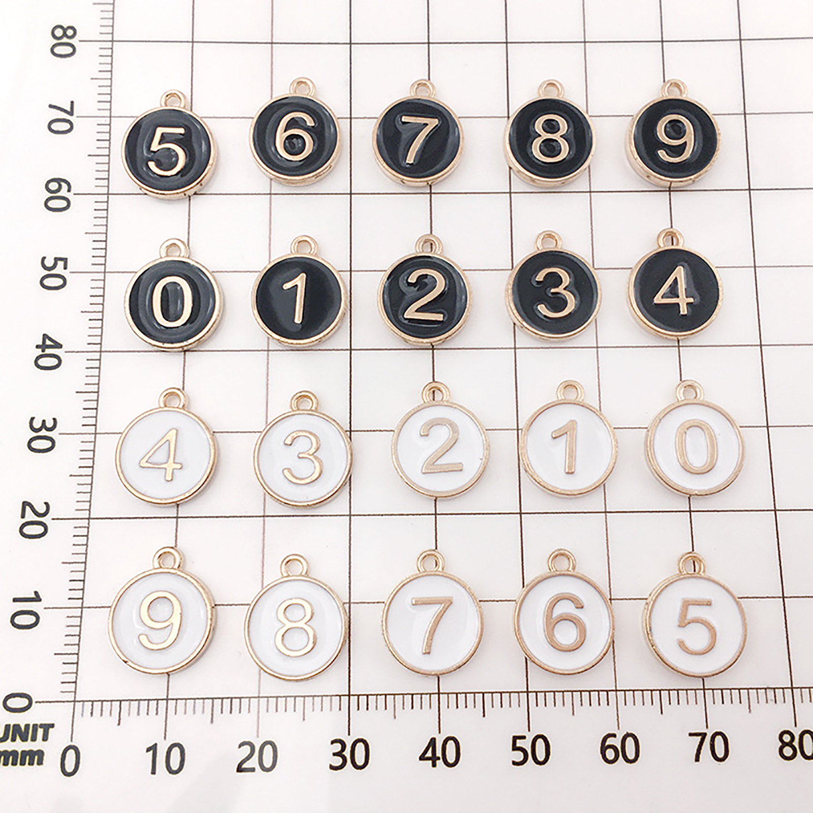 10PCs Zinc Based Alloy Charms Pendant Round Gold Color DIY Findings White Number Message " 0 " Enamel 14mm x 12mm
