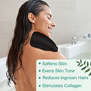 <<  Shower exfoliator for home:  Our body exfoliating scrub mitt can help lift away dead skin,dirt, and impurities. Exfoliate easily at home to get fresh, soft skin