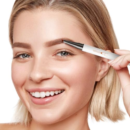 2024 Upgrade 3D Microblading Eyebrow Tattoo Pencil 4 Fork Tip, Fine Stroke Microblading Eyebrow Pencil Magic Eyebrow Pencil, Waterproof Contouring Pen Creates Natural Makeup Effect (Dark Brown)