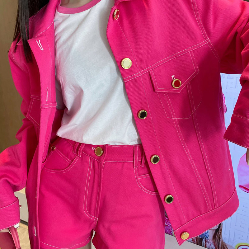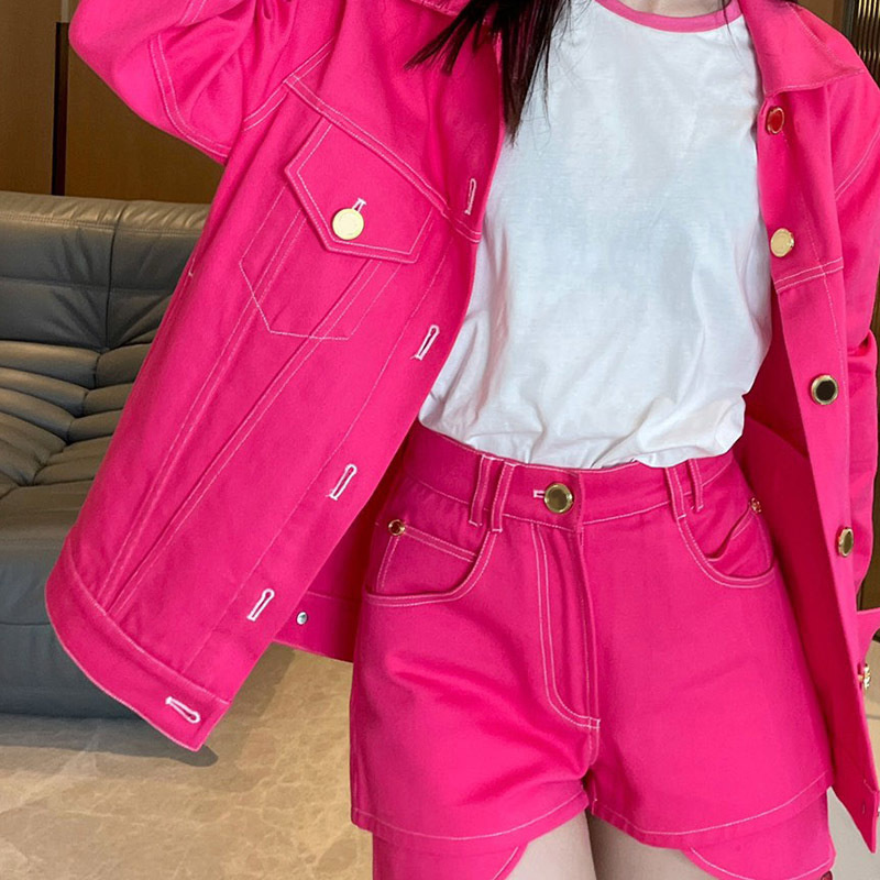 22 Pink Letters Denim Short Sets Women Luxurious Metal Single Breasted Lapel Jacket Sexy Slim Pocket Button Denim Shorts