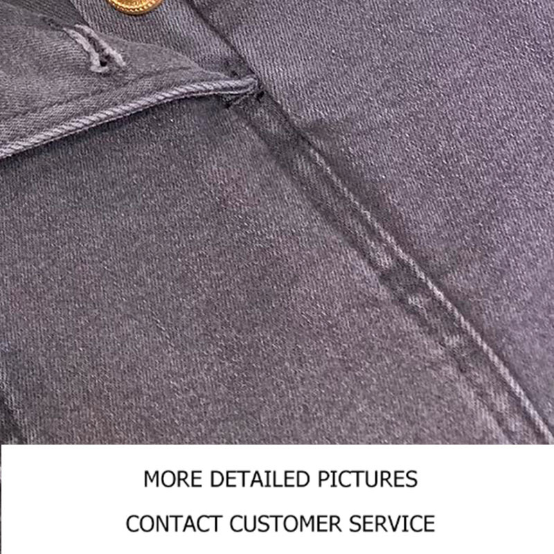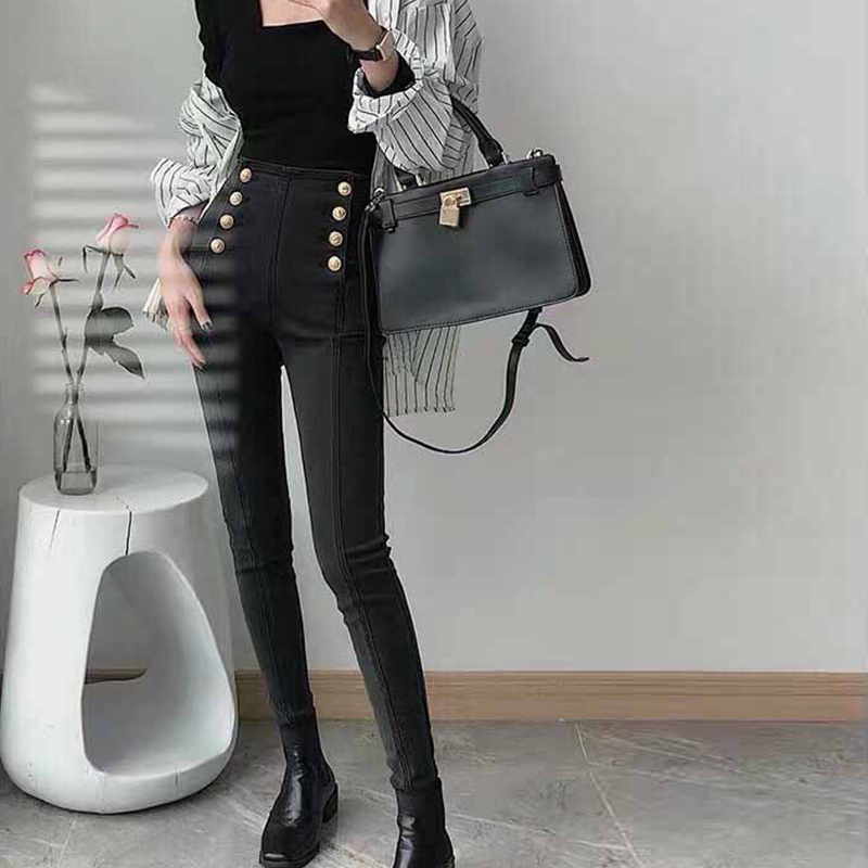 22 High Street Elasticity High Waist Buttons Jeans Women Luxurious Double Breasted Grey Denim Trousers Tight Pockets Black Jeans