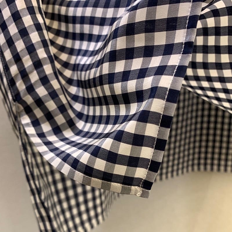 22 Vintage Plaid V Neck Sleeveless Navy Shirt women Elegant Blue White Plaids Pleated Shirts casual lapel loose pullover shirtsA0424