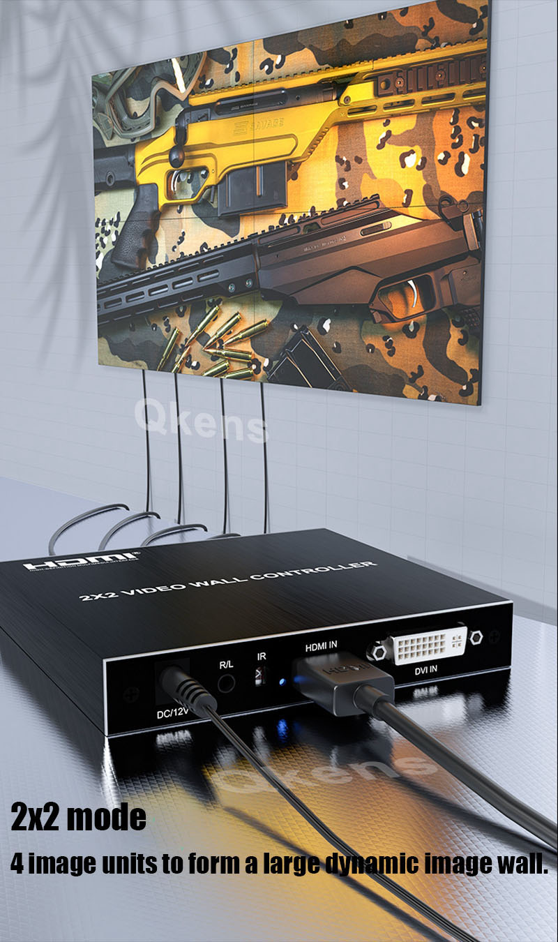 Our Rullz 1080P 2X2 video wall controller,support 1 HDMI or DVI input and 4 HDMI output,its main function is to