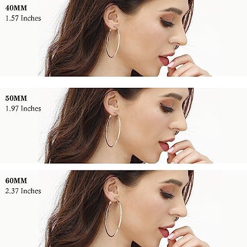 3 Pairs Sterling Silver Hoop Earrings - 14k White Gold Plated Hoop Earrings Big Hoop Earrings Set Silver Hoop Earrings for Women Valentine's Day Gift Jewelry (40MM 50MM 60MM)