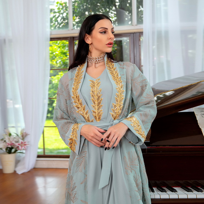 3Pcs Elegant Jalabiya Sequins Arabic Dress Embroidered Women Arabian Evening Party Wear Moroccan Kaftan Muslim Ramadan Cozy Robe