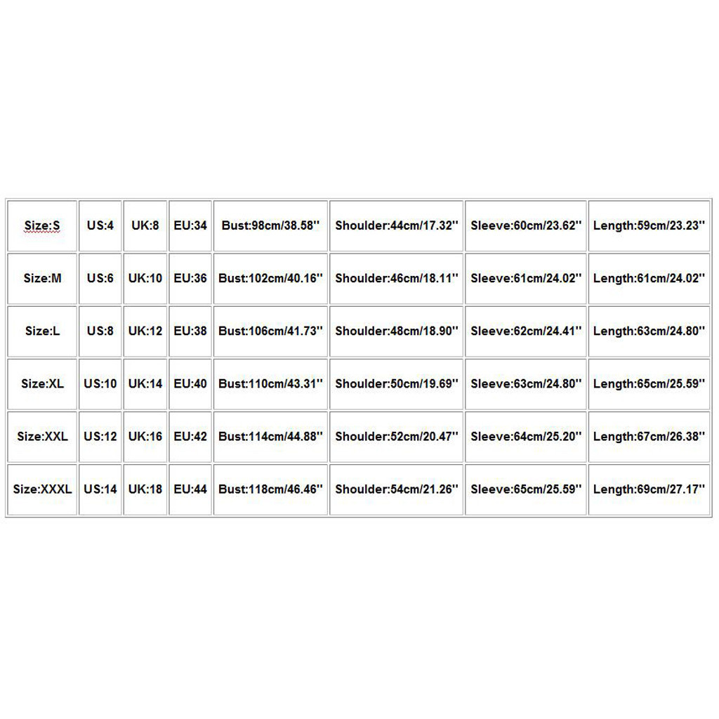 | Size | US | UK | EU | Bust | Shoulder | Sleeve | Length |