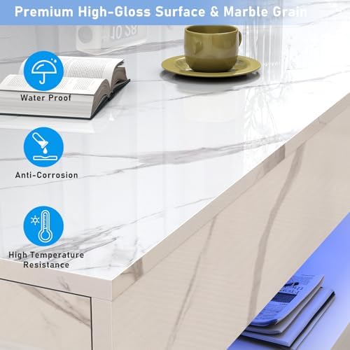 The only complain I have so far it’s it is a finger print magnet, and boy can you see them a mile away due to the black glossy surface. It seems solid though.The 2 drawers on the side are good for remotes which I prefer to be hidden.One of the nice features is there is no forced outlet connection but I believe it’s still an option if you don’t mind the cords. The lights use batteries (which I’m not sure how I feel about it) but looking to get a cord if I can figure out a way to make it invisible somehow.