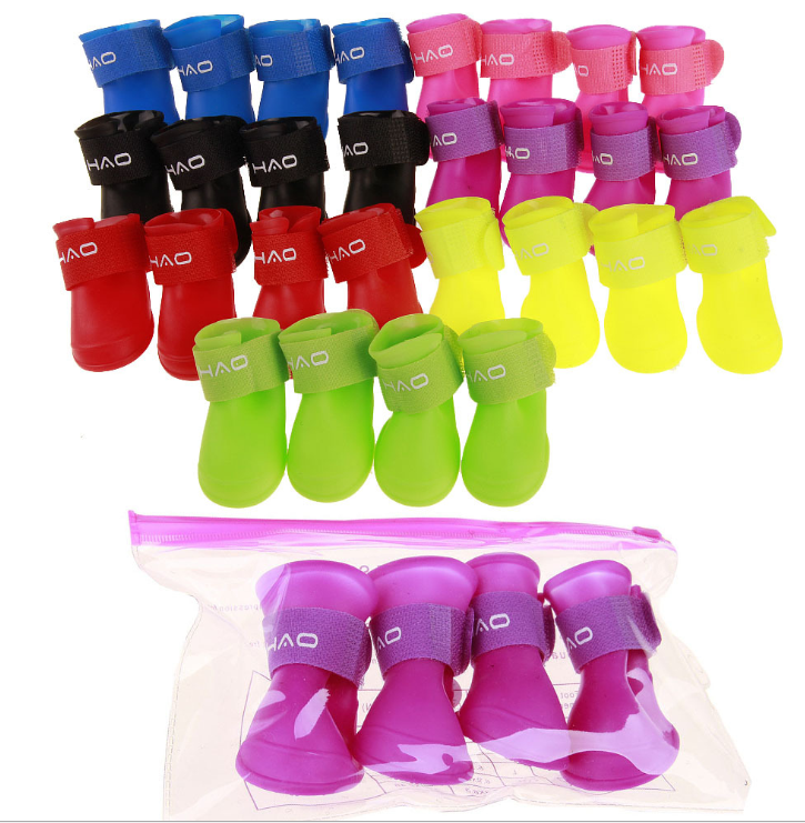 4Pcs Pet Dog Rain Shoes Anti-Slip Waterproof Shoes for York Dogs Winter 7 Colors Rubber Boots Shoes for Small Dogs Chihuahua