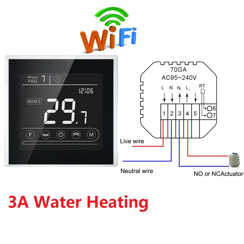 MK70-GA-WiFi: Water floor heating to control NO NC actuator or the electromagnetic valve with WiFi function, Voice control, 3A.