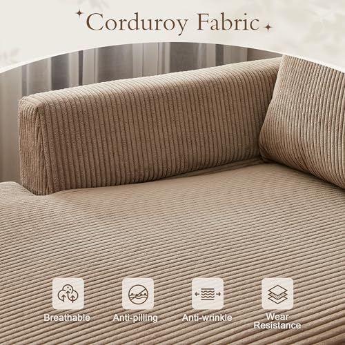 96" Corduroy Sectional Sofa Couches for Living Room,Camel L Shaped Sofa Couch with Reversible Chaise,Comfy 3 Seat Reversible Sofa for Bedroom Office Apartment Convertible Couch (Camel)