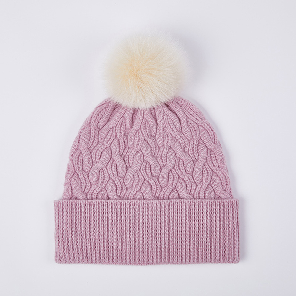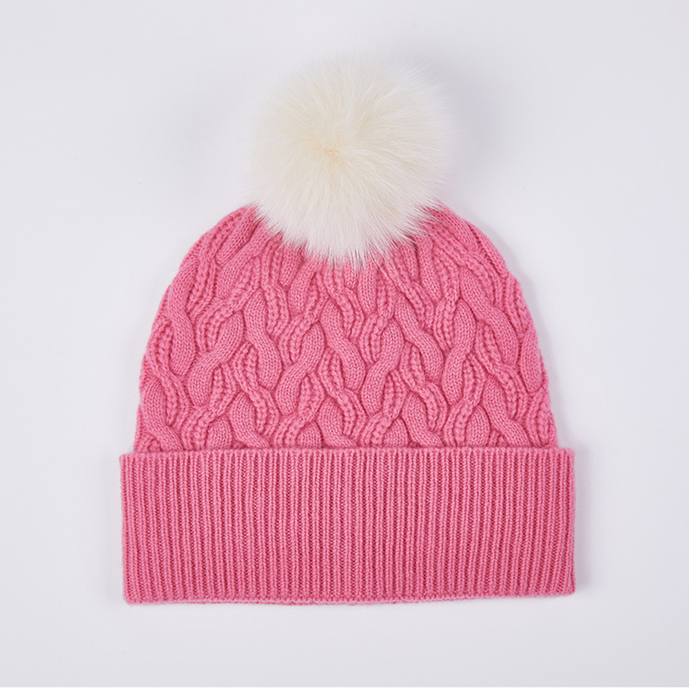 Australian Merino Wool Hat with Real Fox Fur Pompom Women Winter Knit Slouchy Beanie Cashmere Skullies Hats For Girls