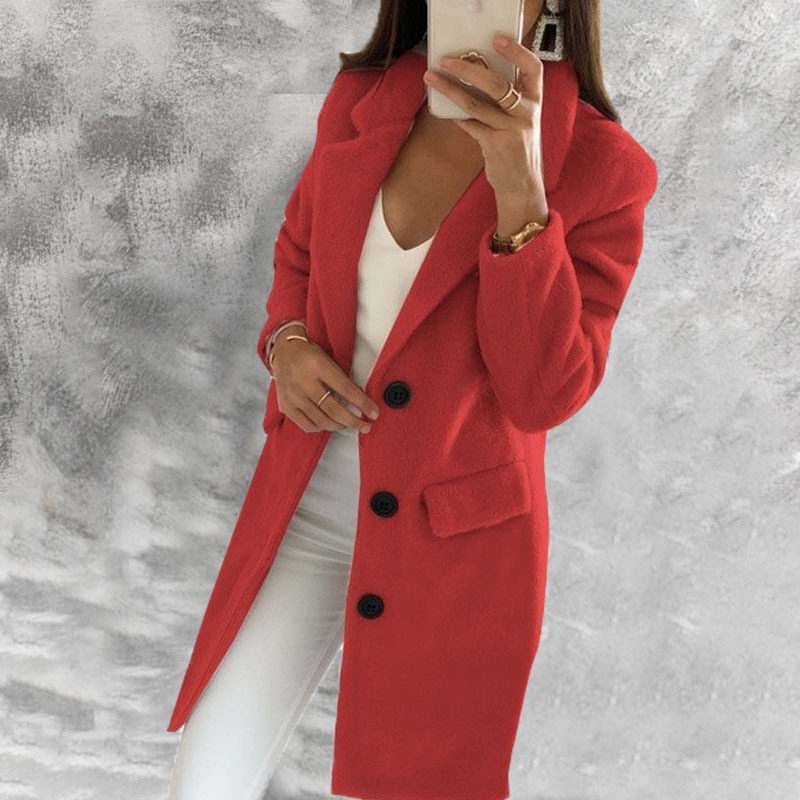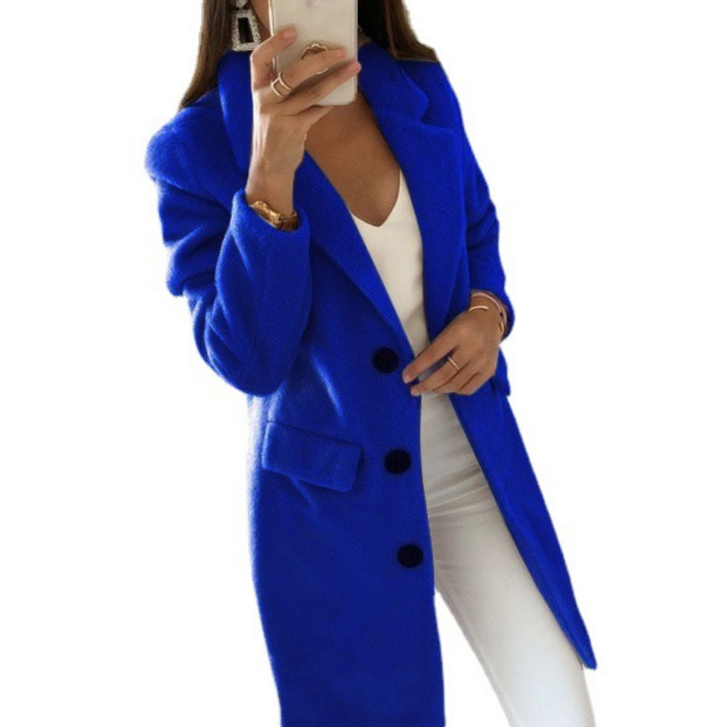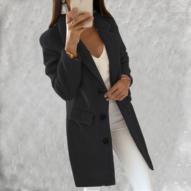 Autumn Winter Women Jacket Long Woolen Coat Slim fit Casual Turn Down Collar Overcoat Cardigan Outerwear S-5XL