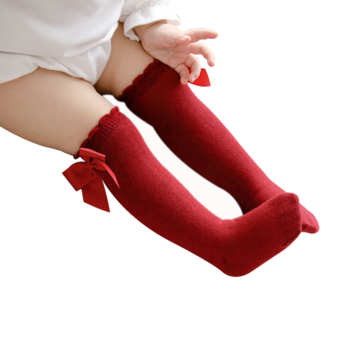 Baby Girls Cotton Long Socks, Solid Color Big Bow Knee High Stocking, Cute Lacework Princess Leg Warmer, Floor Slipper