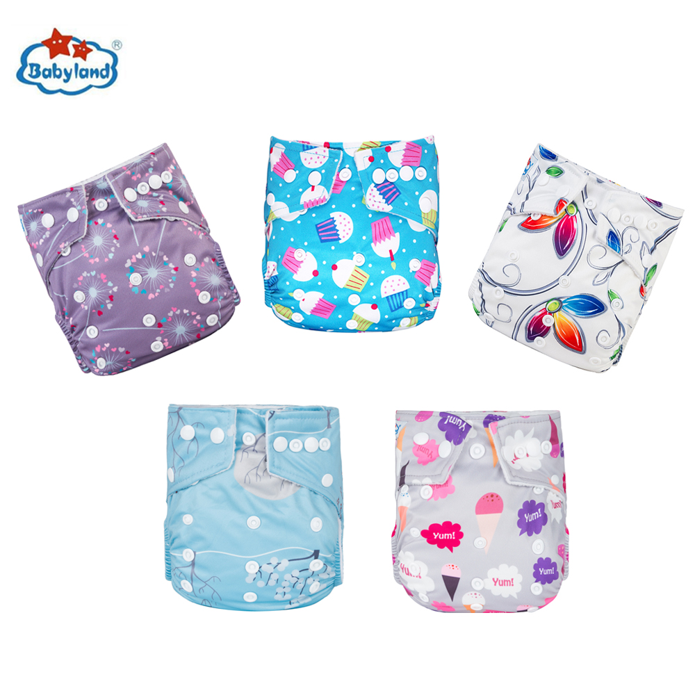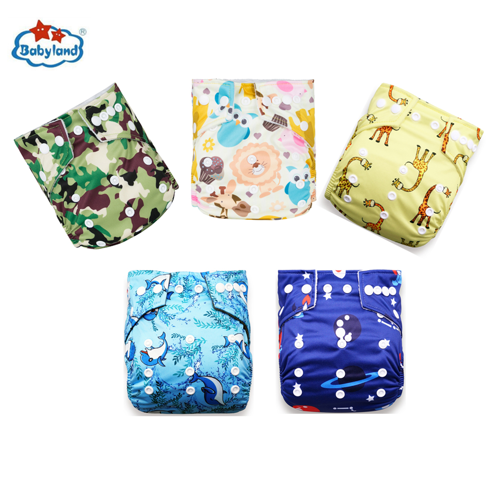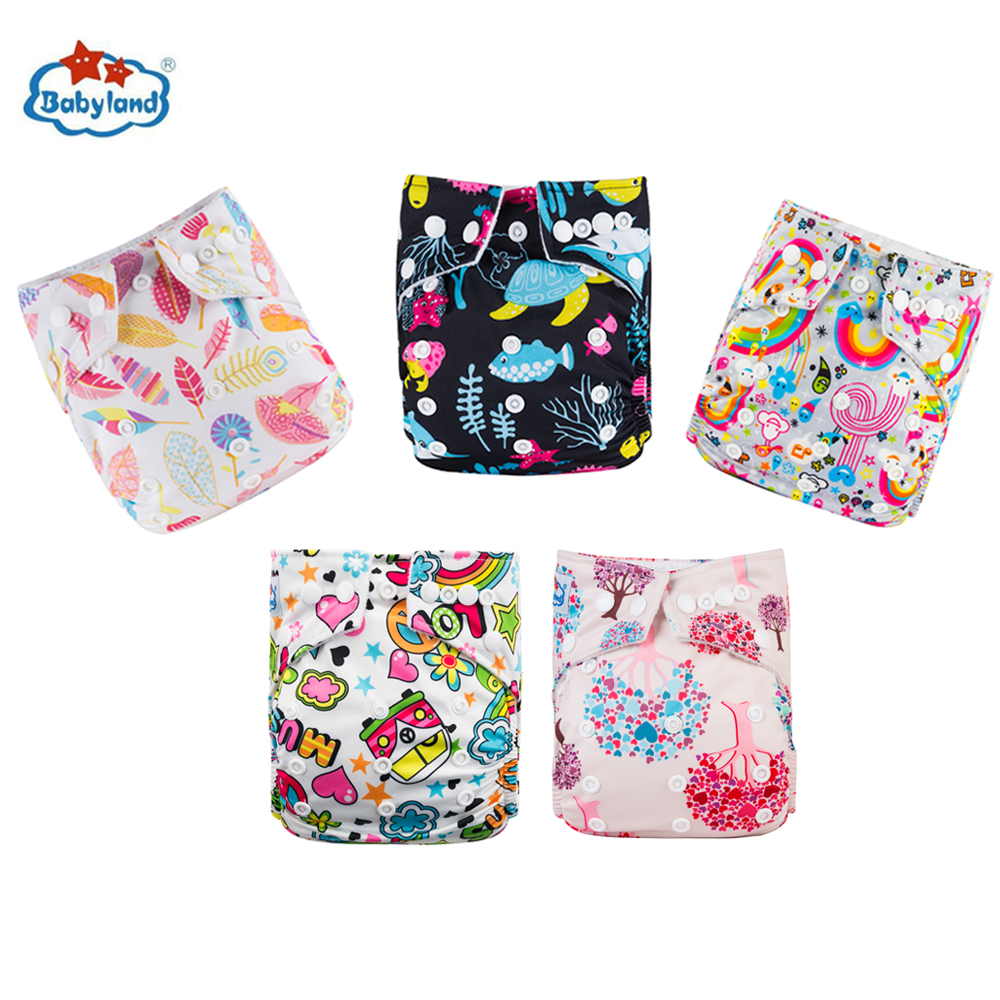 Babyland My Choice Models Baby Diapers 5pcs/Lot Cloth Nappy Girl Boy Prints Pocket Diaper For 0-2 Years 3-15KG Baby Diaper Cover