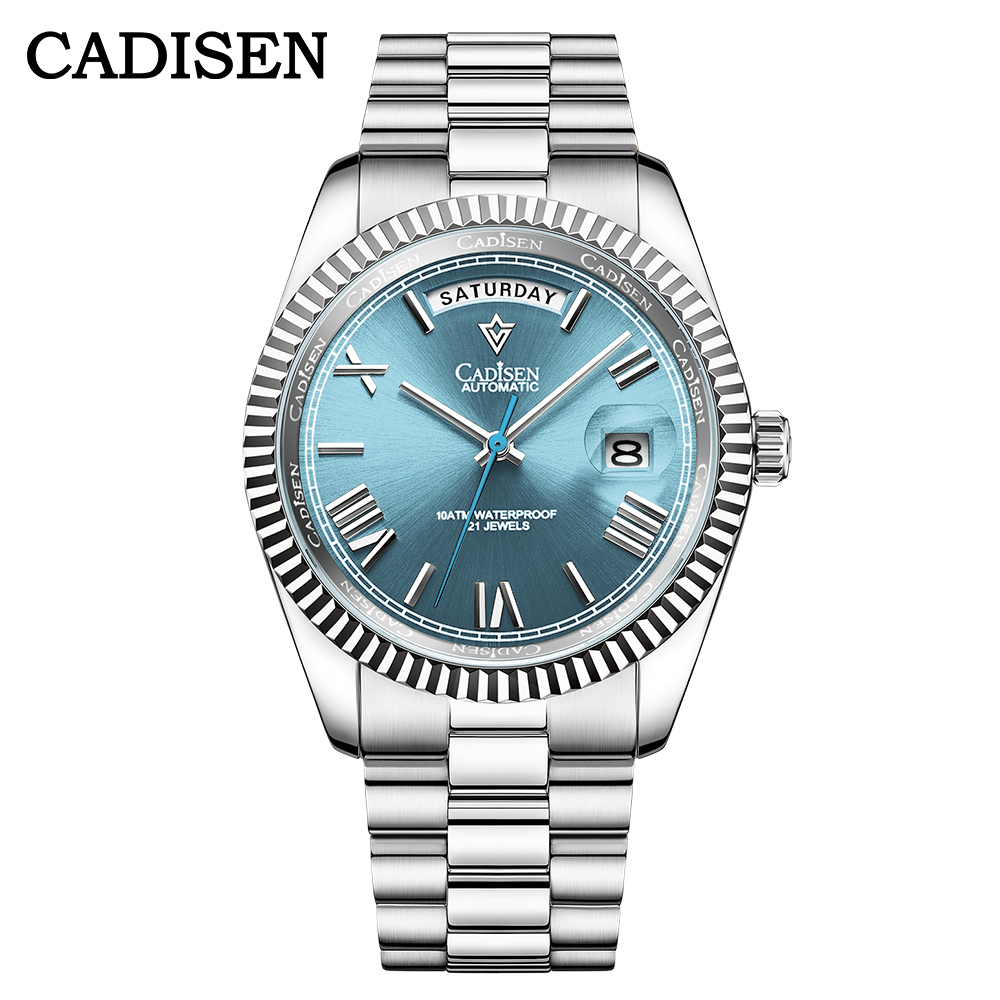 CADISEN C8185 ICE-BLUE Dial Sapphire Glass Watches Men Japan MIYOTA-8285 Movt Men`s Watch Mechanical Automatic Diver Watch Clock