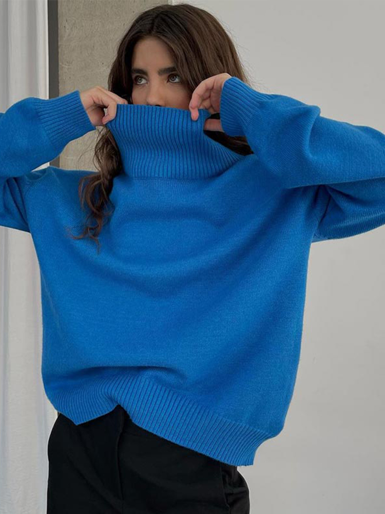 Casual Women's Knitted Solid Turtleneck Sweater Oversize Long Sleeve Ladies Loose Pullover Tops Autumn Warm Female Sweaters