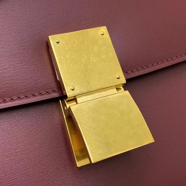 Celine Classic Box Medium Bag In Burdundy Box Calfskin