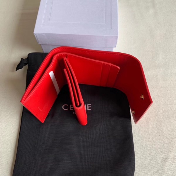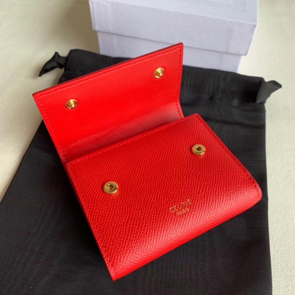 Crafted in grained calfskin leather by the House of Celine, this small trifold wallet with a flap offers enough space to fit into even a tiny bag or clutch, yet with space for coins, notes and credit cards, this neat wallet is the ultimate mini companion. Coupled with an elegant design with golden finishing touches.