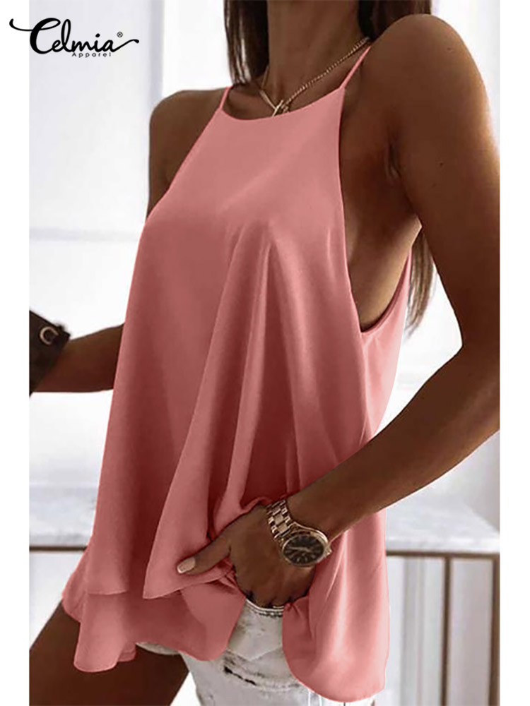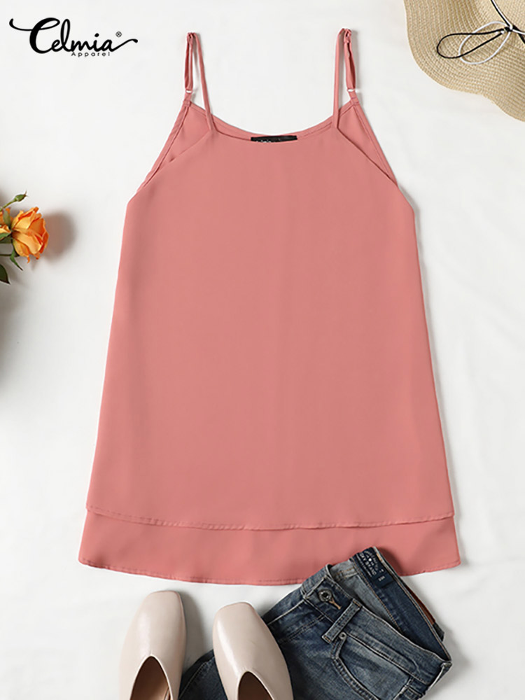 Celmia Women Sexy Camisole Casual Loose Ladies Thin Top Summer Sleeveless Layered Tanks Tops Leisure Solid Color Camis