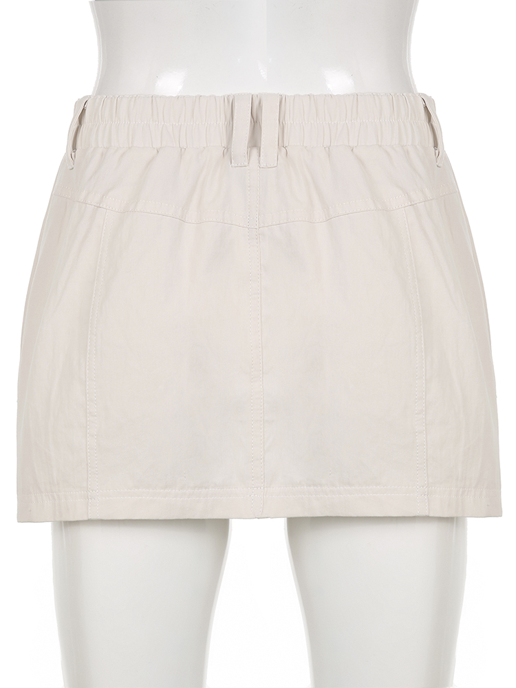 Cuteandpsycho Retro Y2K Solid Cargos Skirts Vintage Streetwear Pockets Mini Summer Skirts Harajuku Cute Aesthetic 2000s Outfits